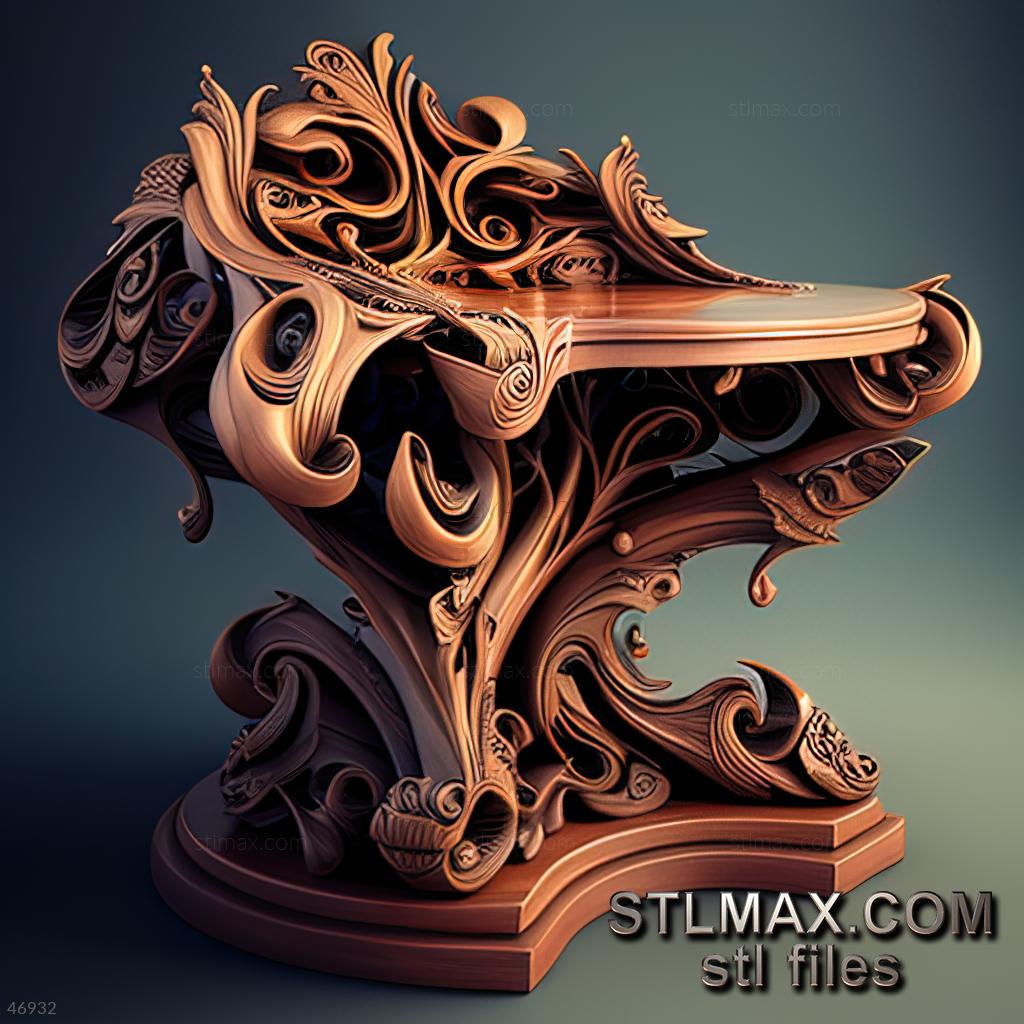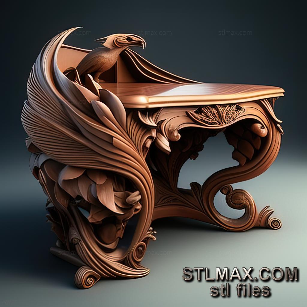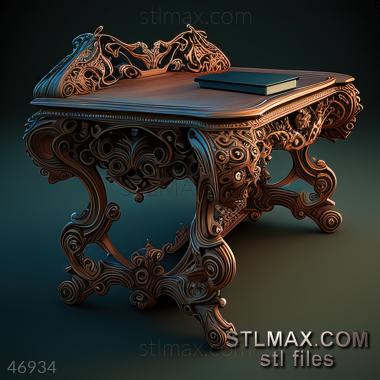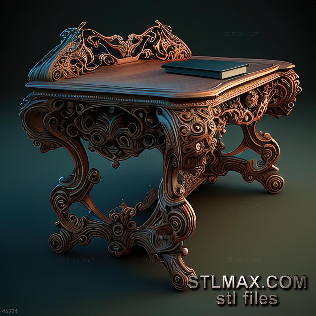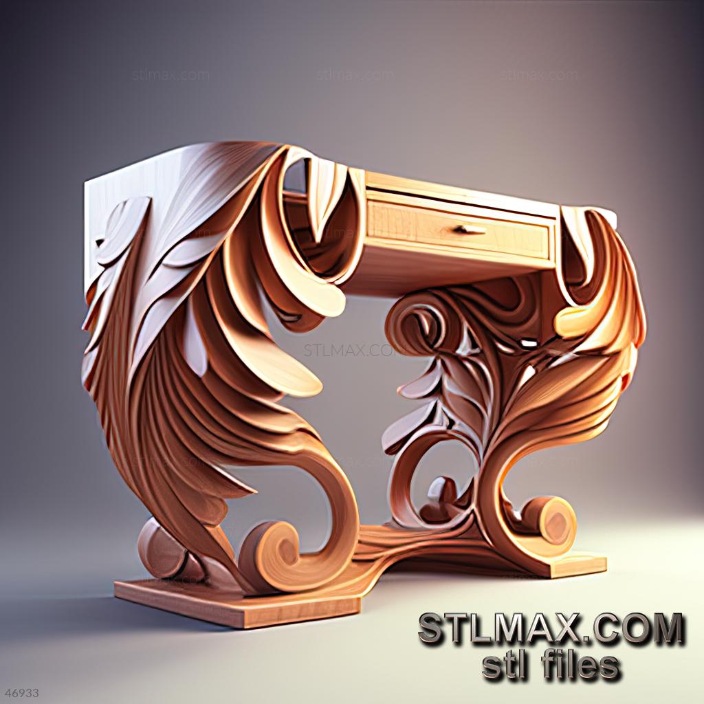 Desk CARVED WOODEN 3D RENDER--no words 8