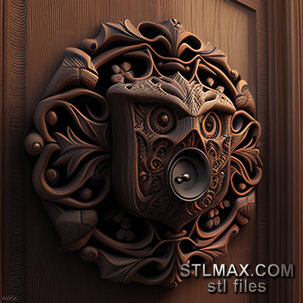 Doorbell CARVED WOODEN 3D RENDER--no words 1