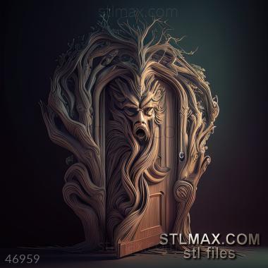 Door CARVED WOODEN 3D RENDER--no words 3