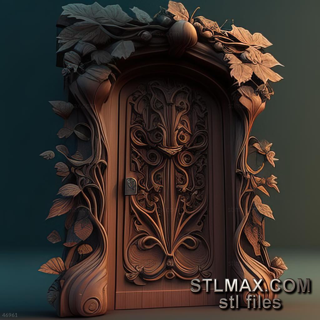 Door CARVED WOODEN 3D RENDER--no words 5