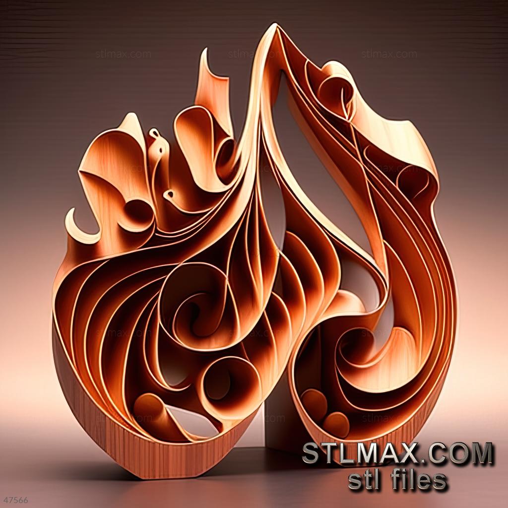 music CARVED WOODEN 3D RENDER--no words 9