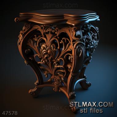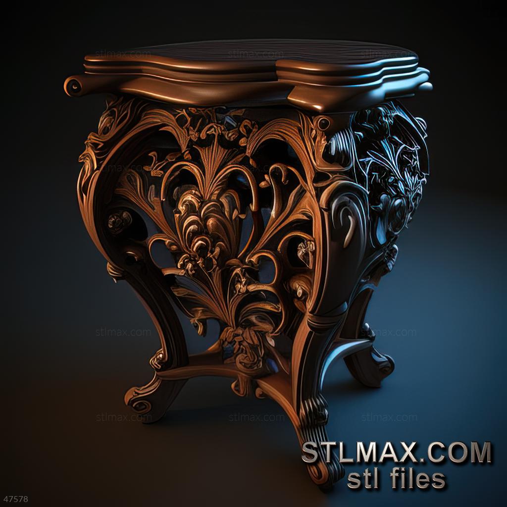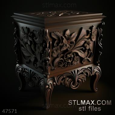 Night table CARVED WOODEN 3D RENDER--no words 8