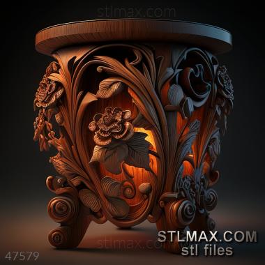 Night table CARVED WOODEN 3D RENDER--no words 3