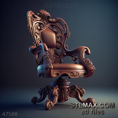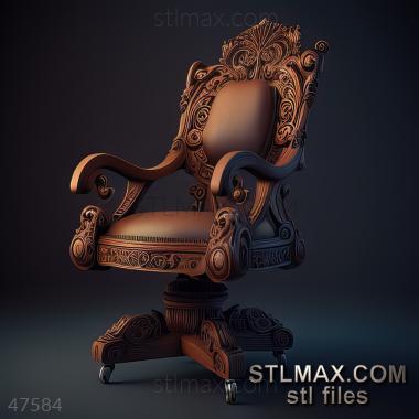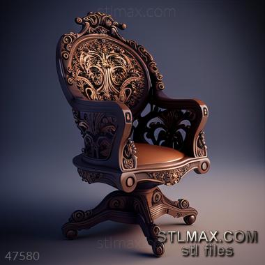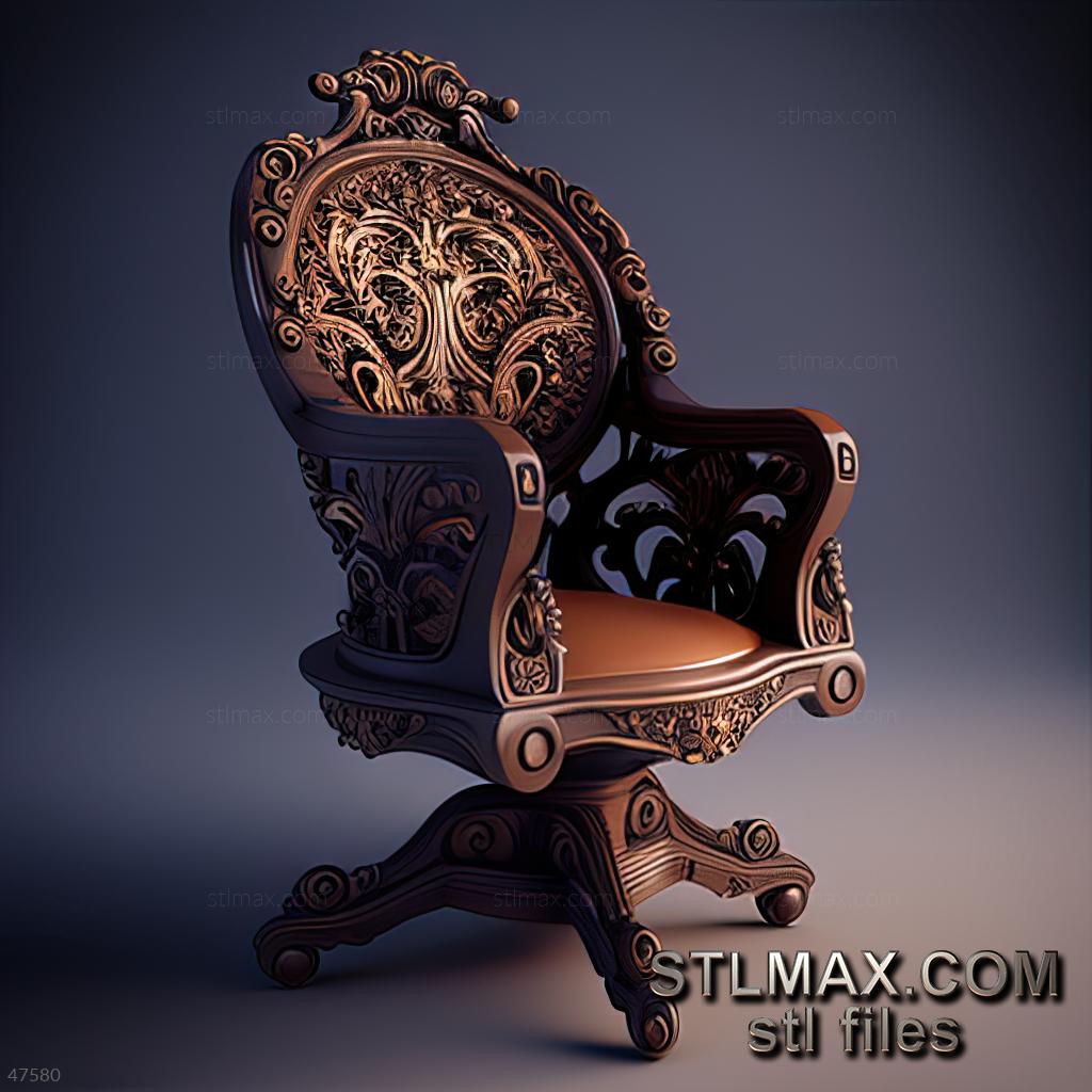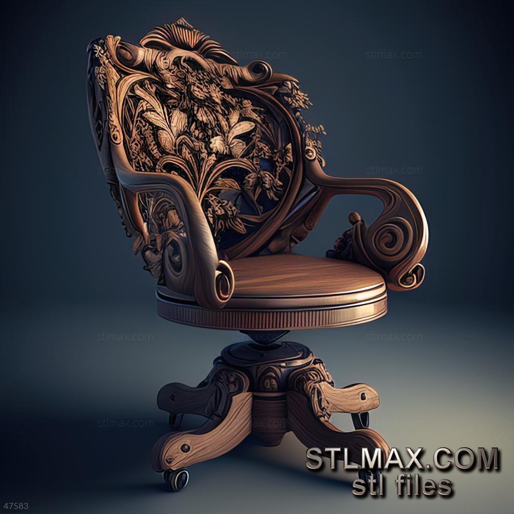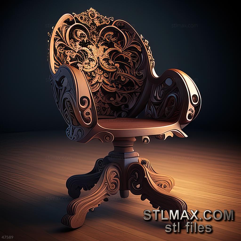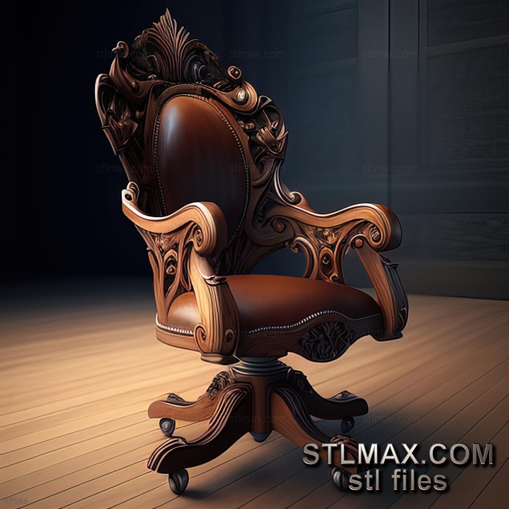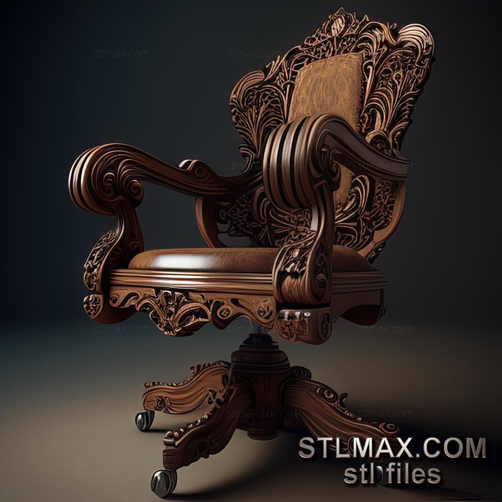 office chair CARVED WOODEN 3D RENDER--no words 1