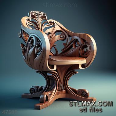 office chair CARVED WOODEN 3D RENDER--no words 9