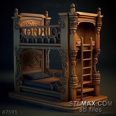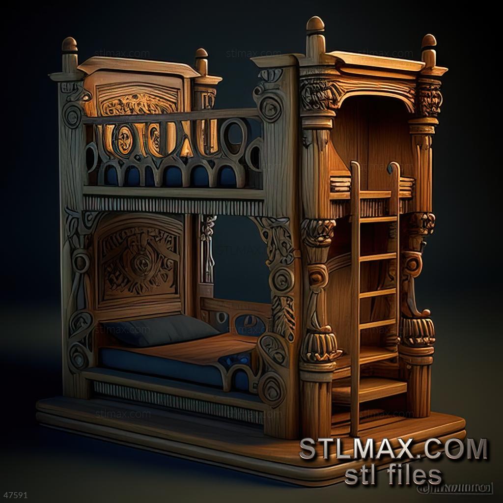 of bunks CARVED WOODEN 3D RENDER--no words 1