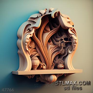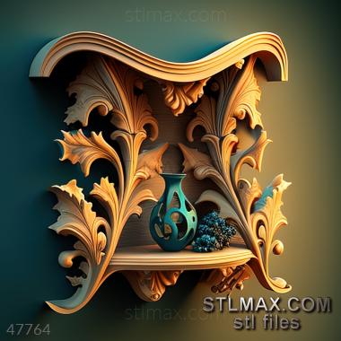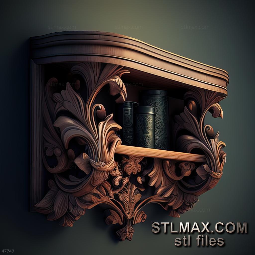 shelf corner CARVED WOODEN 3D RENDER--no words