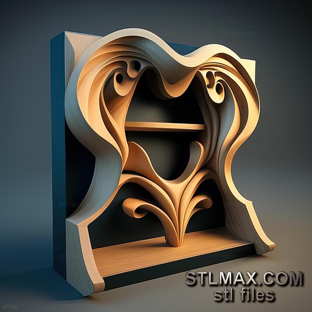 shelf CARVED WOODEN 3D RENDER--no words 1