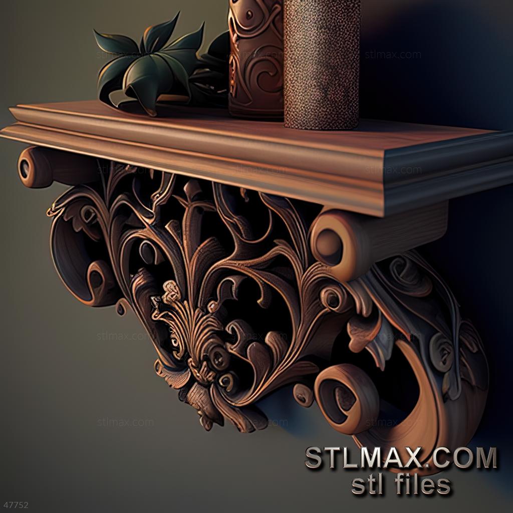 shelf console CARVED WOODEN 3D RENDER--no words 9