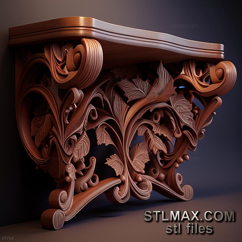 shelf console CARVED WOODEN 3D RENDER--no words 1