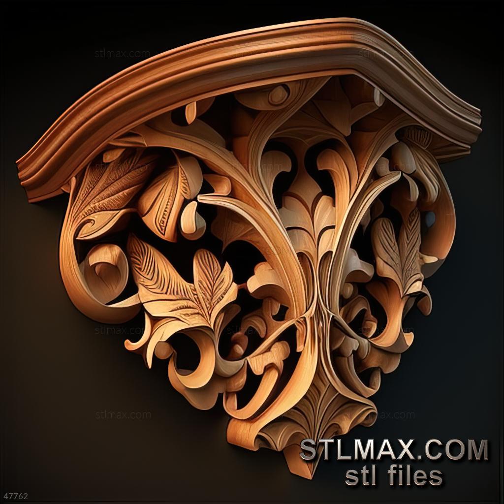 shelf corner CARVED WOODEN 3D RENDER--no words 1