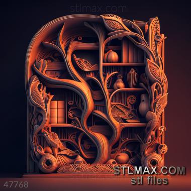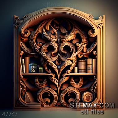 Shelving CARVED WOODEN 3D RENDER--no words 4