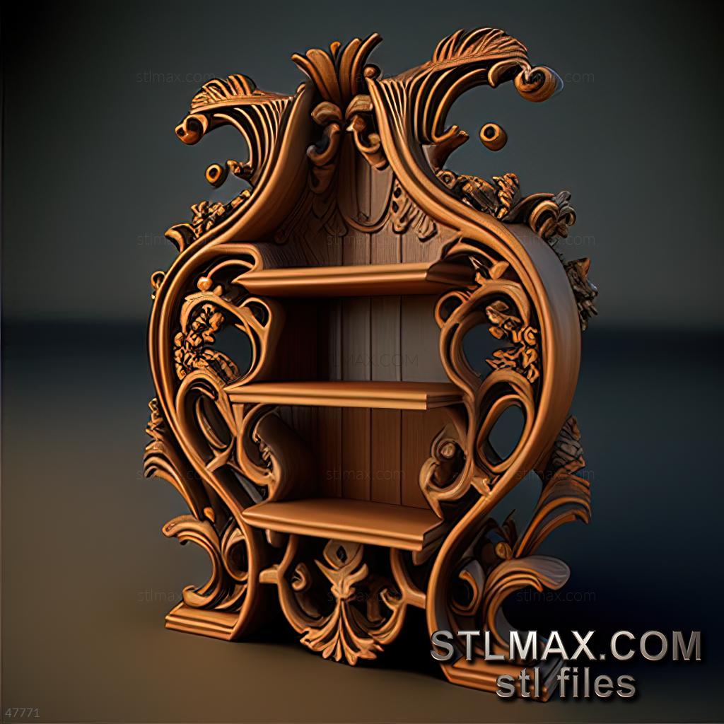 Shelving CARVED WOODEN 3D RENDER--no words 1