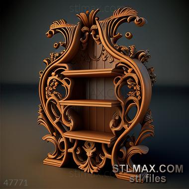 Shelving CARVED WOODEN 3D RENDER--no words 2