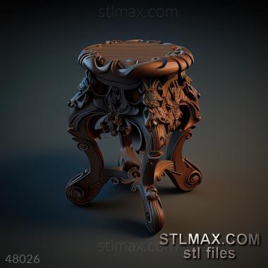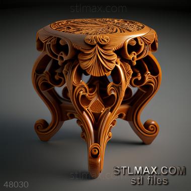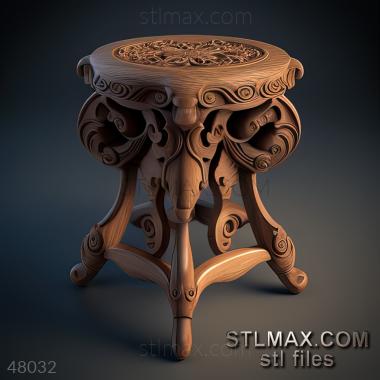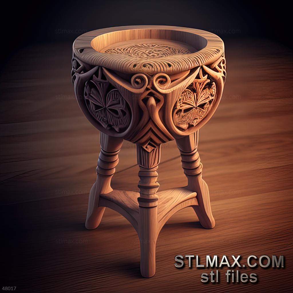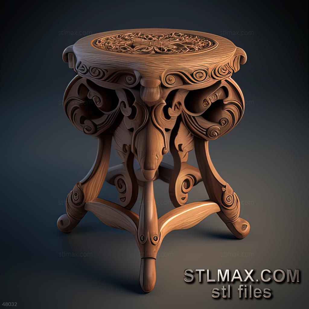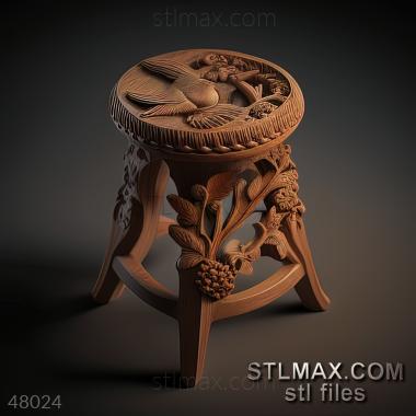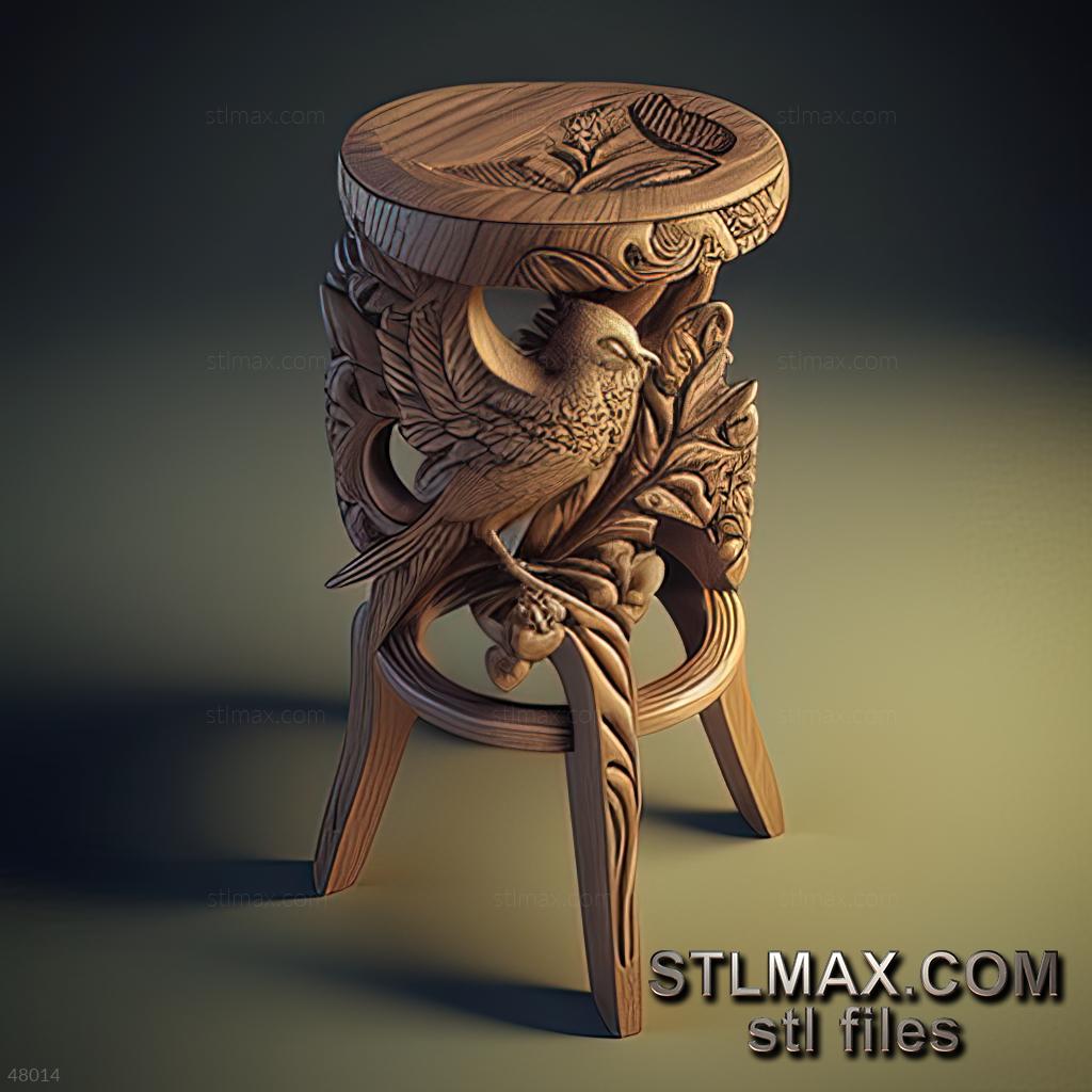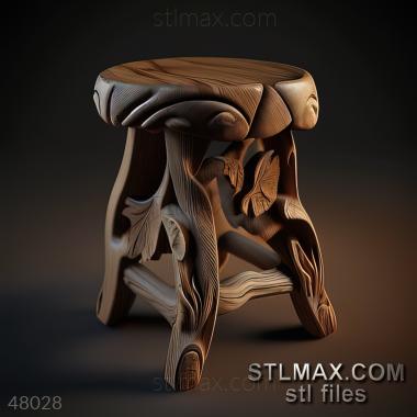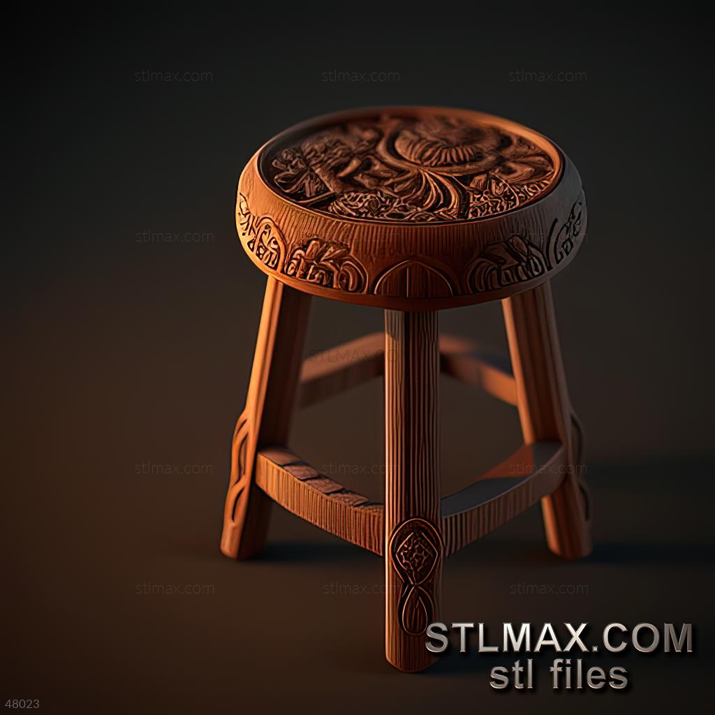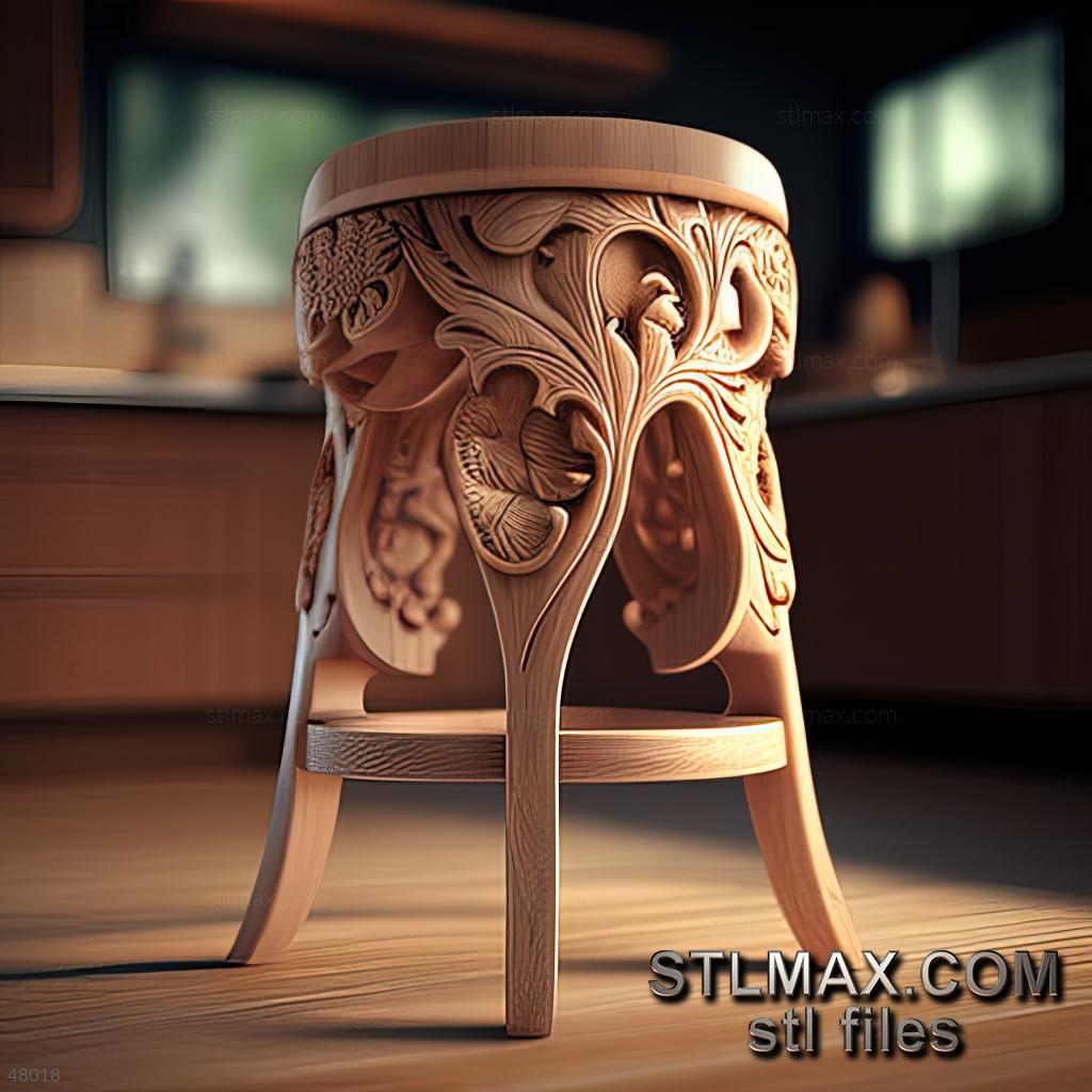 stool kitchen CARVED WOODEN 3D RENDER--no words 5