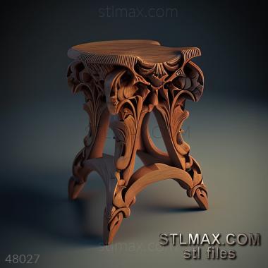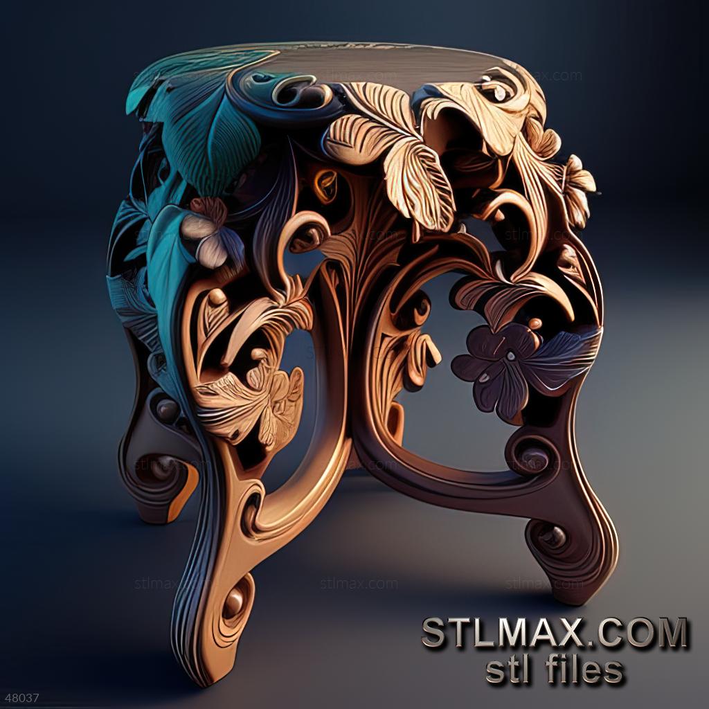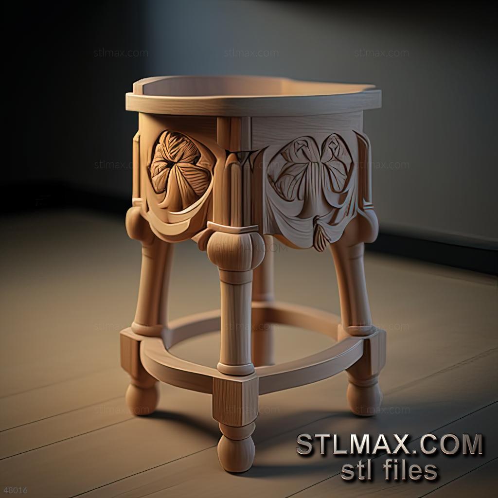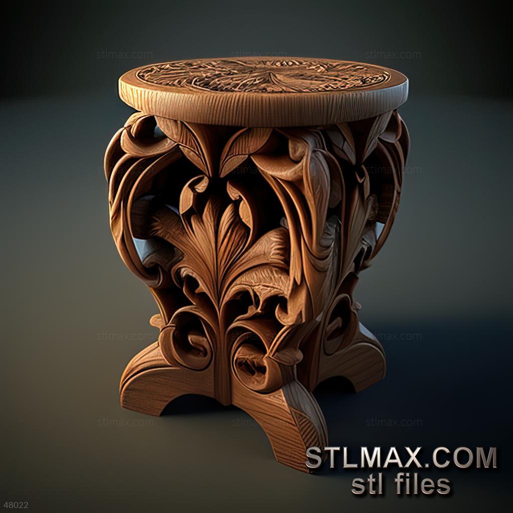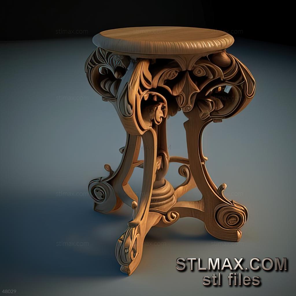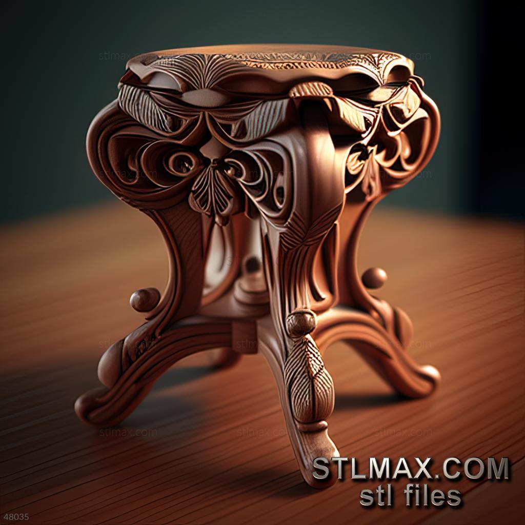 stool viennese CARVED WOODEN 3D RENDER--no words 6