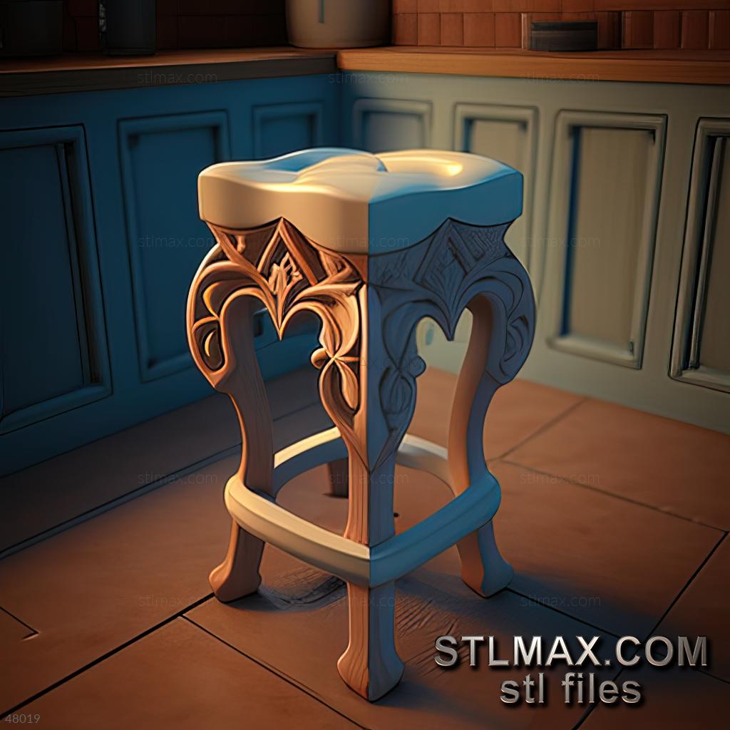 stool kitchen CARVED WOODEN 3D RENDER--no words 4
