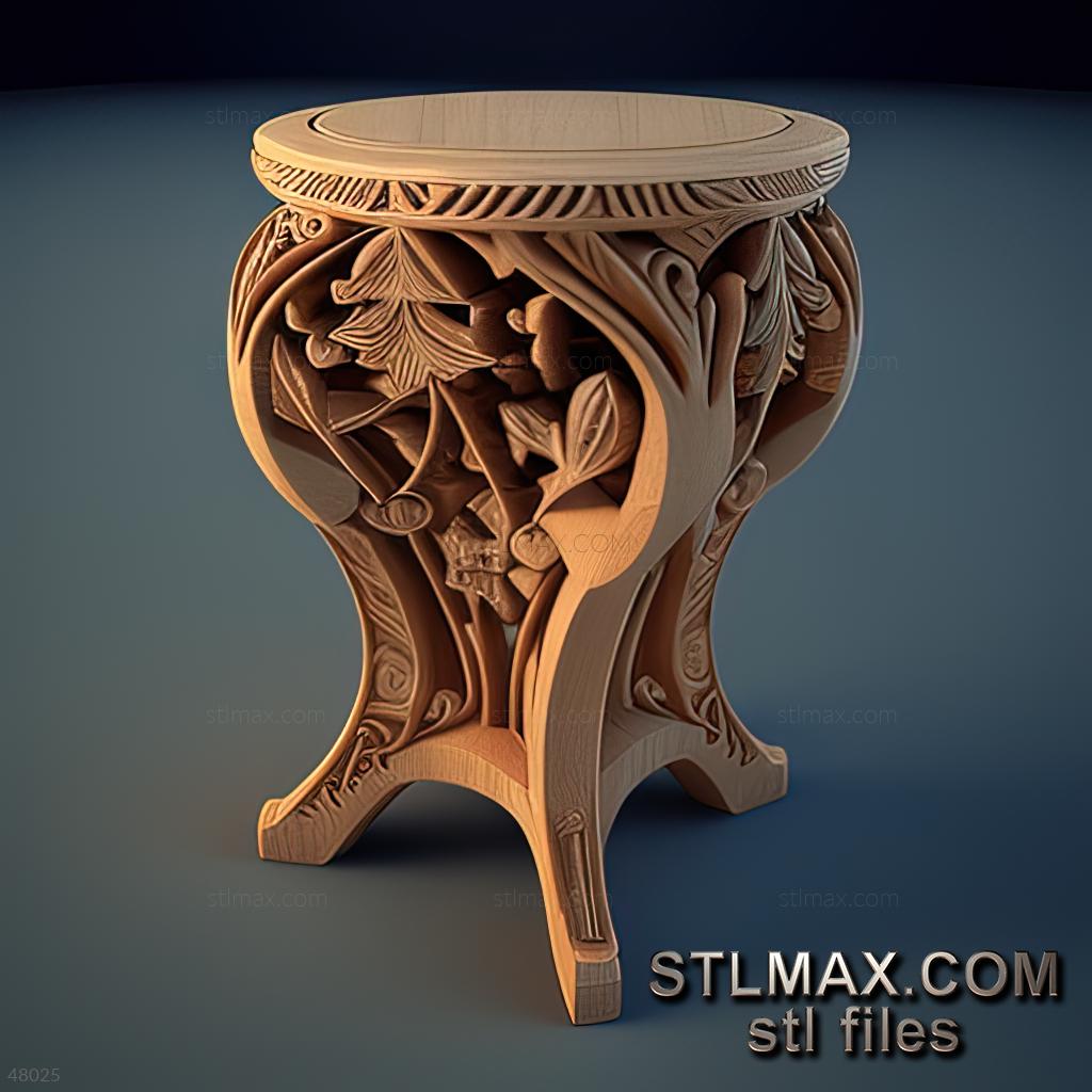 table-pedestal CARVED WOODEN 3D RENDER--no words 2
