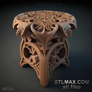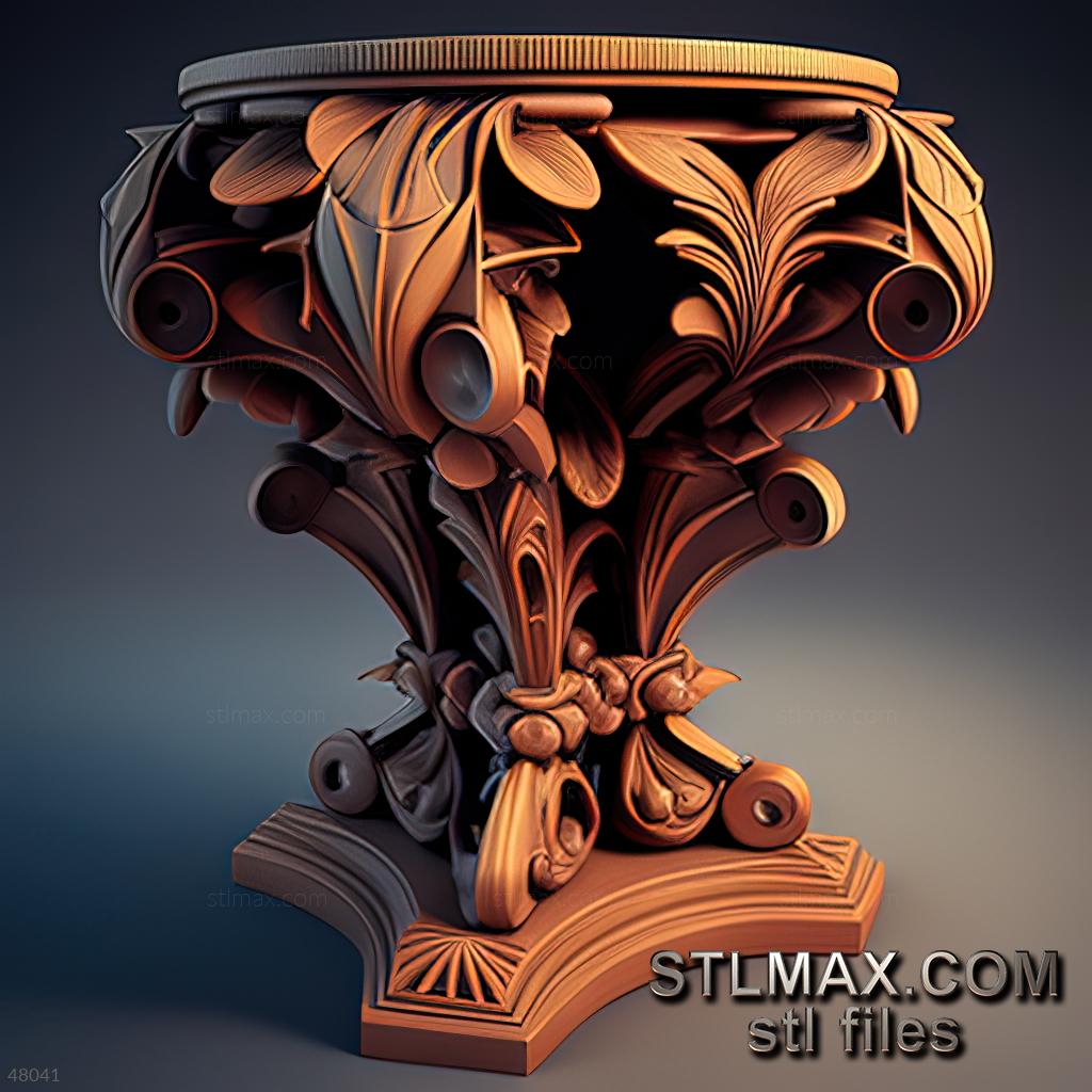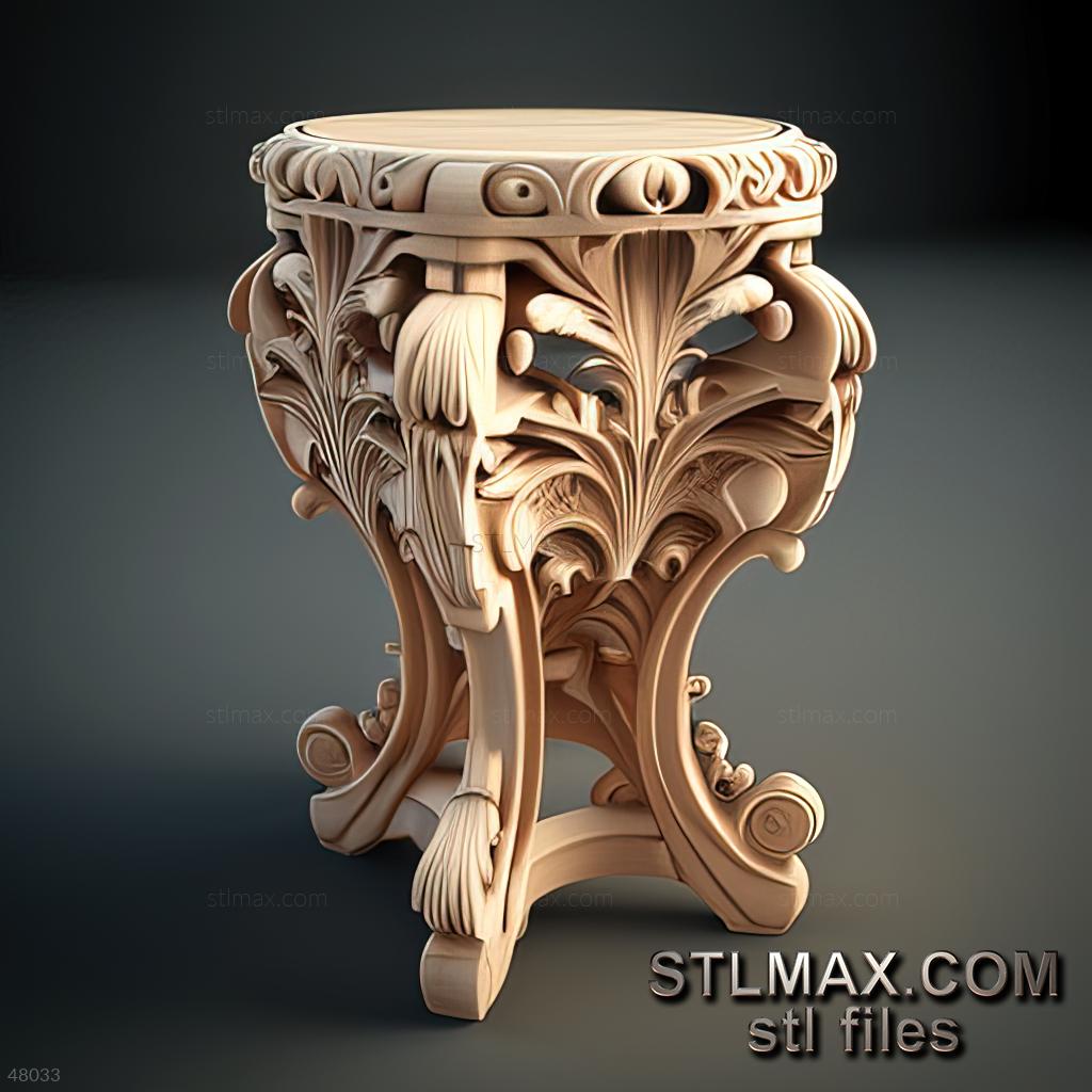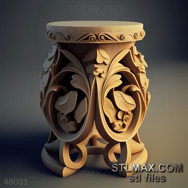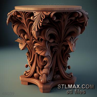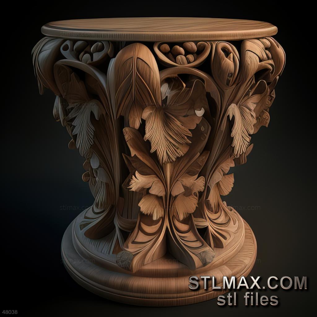 table-pedestal CARVED WOODEN 3D RENDER--no words