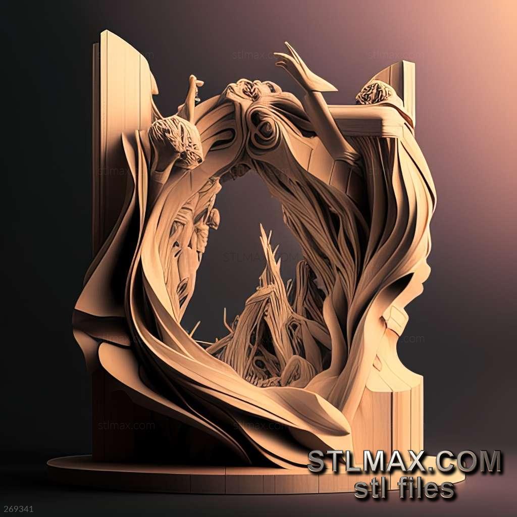 SCULPTCARVED WOODEN 3D RENDER--no words 4