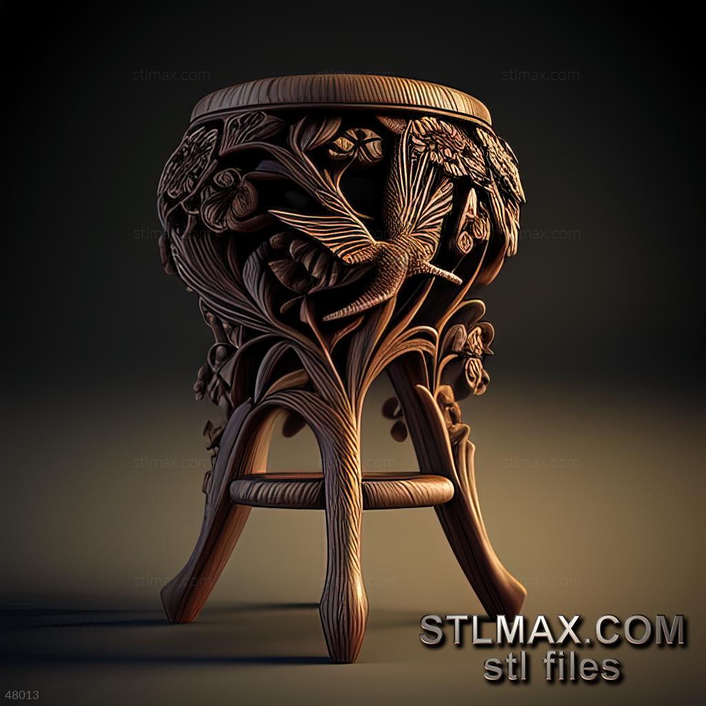3D STL MODEL FOR CNC stool bar CARVED WOODEN 3D RENDER--no words 4 item. 48013
