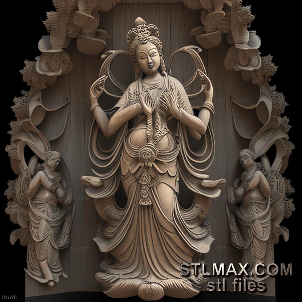 Statue of Goddess Kuan Am in Lin Yung Pagoda The Statue of Goddess Kuan Am in Lin Yung Pagoda is located in Kaohsiung, Taiwan. The statue is a representation of the goddess of mercy and compassion, and is believed to bring luck and fortune to those who visit the pagoda. The statue stands at a height of 4.5 meters and is made of bronze. The statue is decorated with intricate carvings and is surrounded by other statues of deities. The pagoda is a popular tourist attraction in Kaohsiung and is visited by both locals and tourists alike.