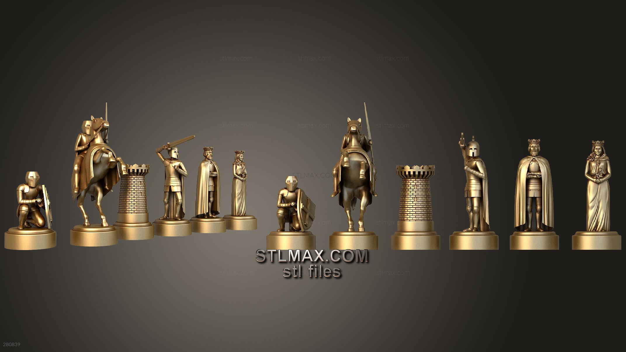 Chess pieces Knights The knight is a piece in the game of chess, representing a knight (armored cavalry). It is normally represented by a horse"s head and neck. Each player starts the game with two knights, which begin on the row closest to the player, between the rooks and bishops. The knight moves in an "L" shape, two squares horizontally and then one square vertically, or two squares vertically and then one square horizontally. The knight is the only piece that can jump over other pieces. It is also unique in that it is the only piece that can move to a square of either color.