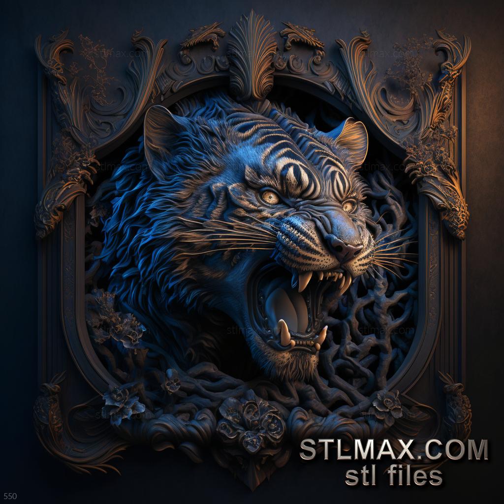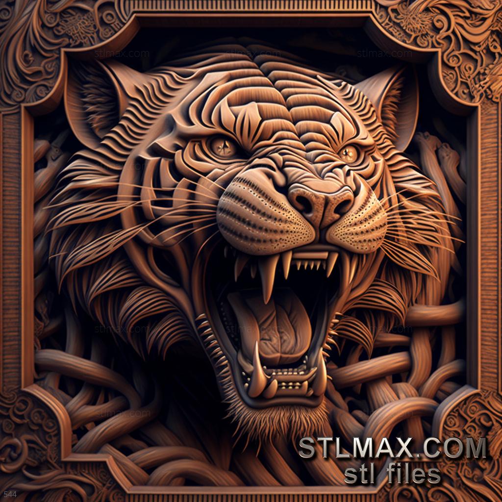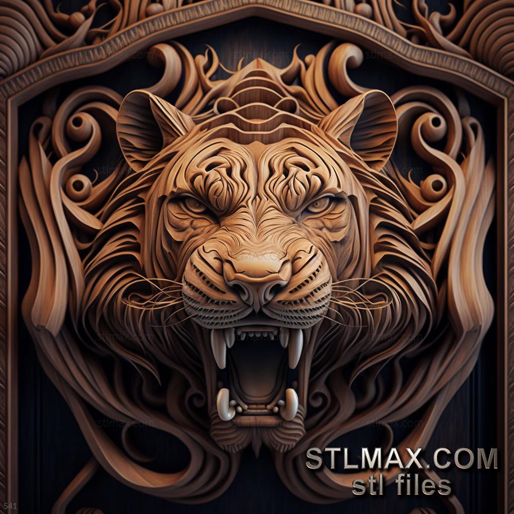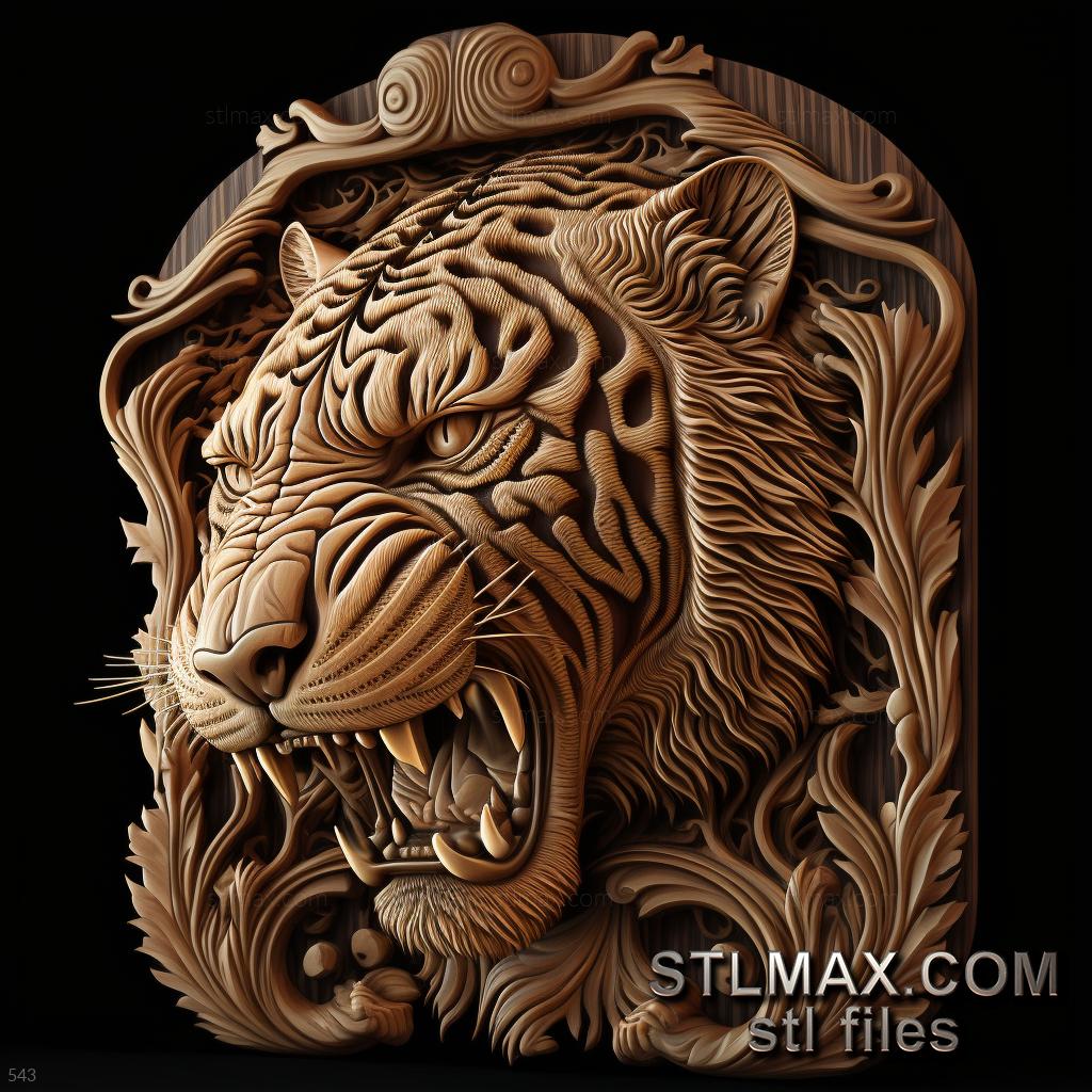 tiger on dramatic carved