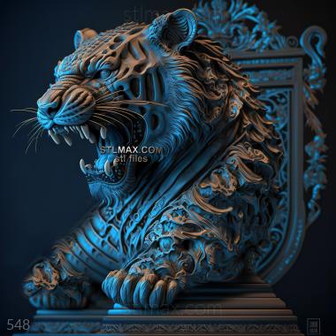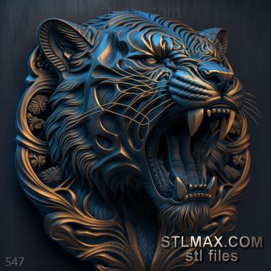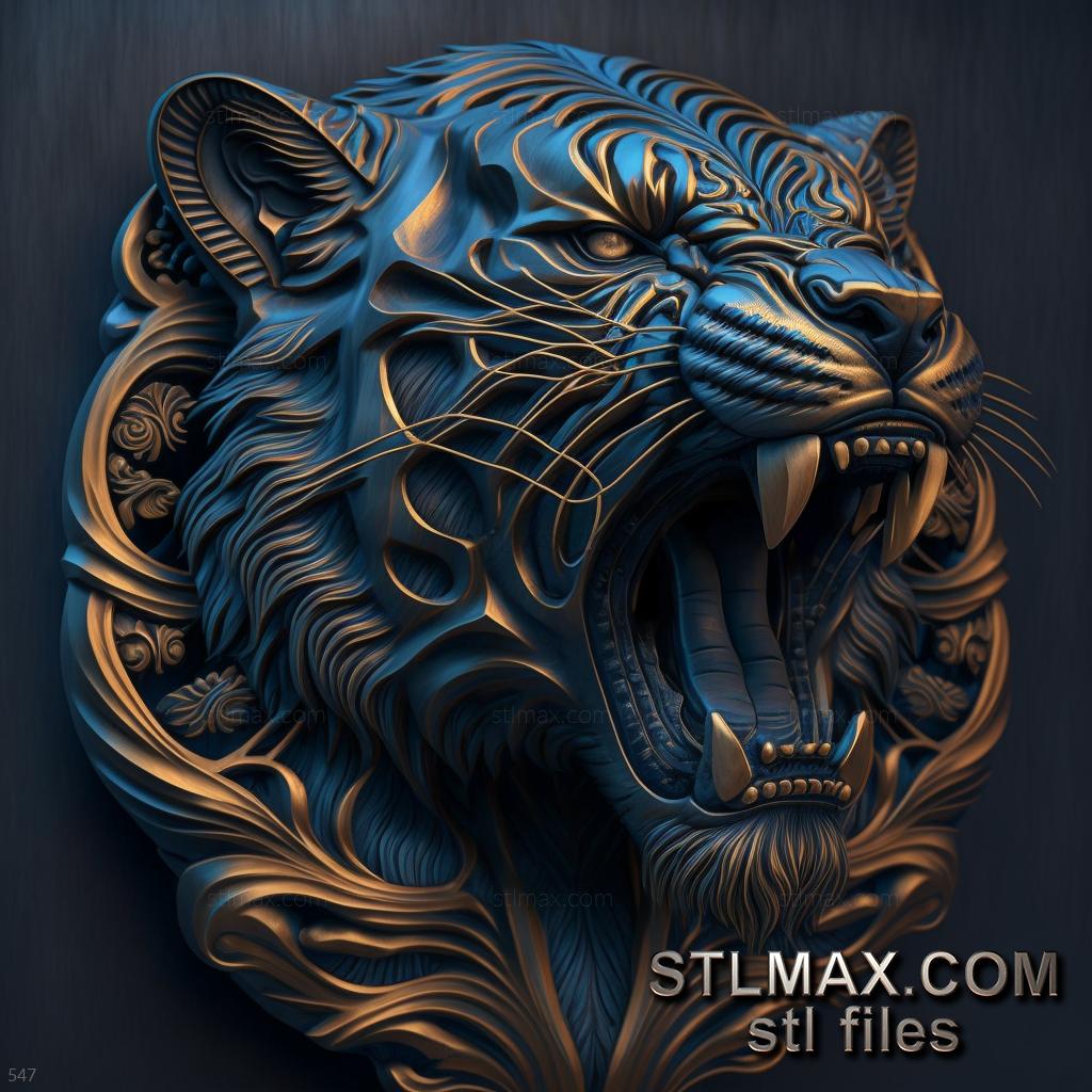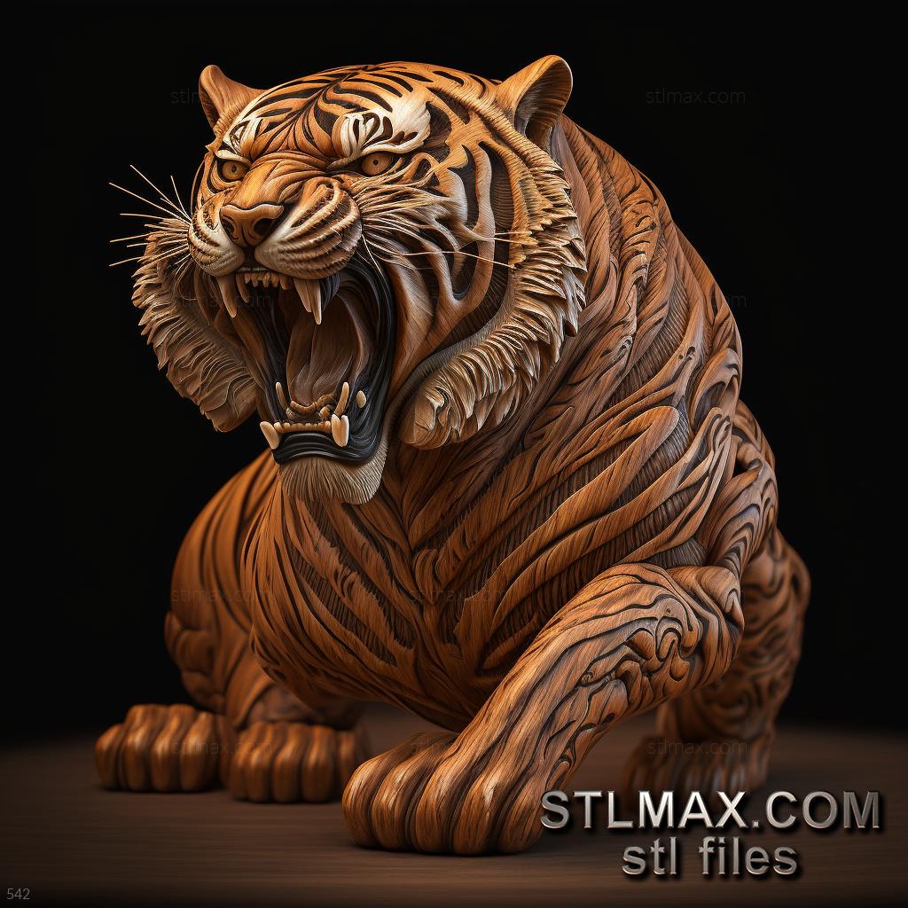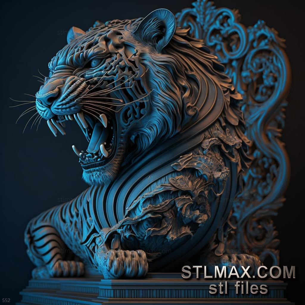 tiger on dramatic carved